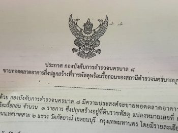 ประกาศผู้ชนะการขายทอดตลาดอาคารสิ่งปลูกสร้างที่ราชพัศดุพร้อมรื้อถอนของสถานีตำรวจบุปผาราม 23/07/2021adminข่าวที่น่าสนใจ, ประชาสัมพันธ์