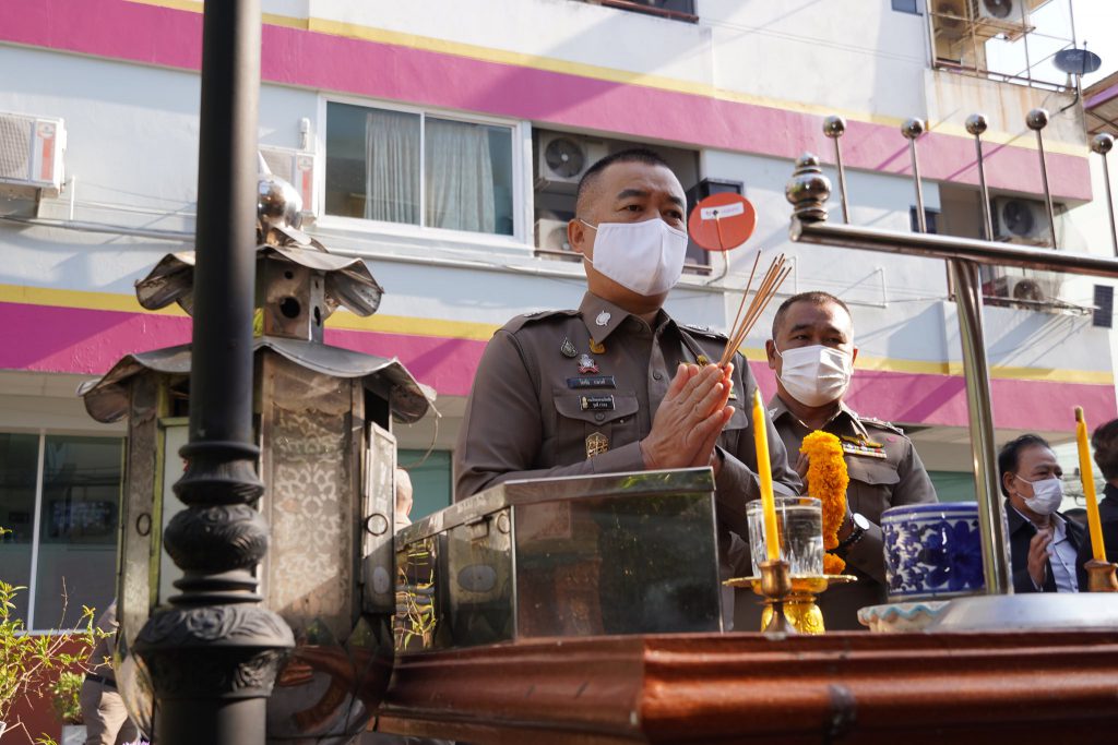 วันที่ 9 มกรคม 2564 เวลา 09.09 น. พล.ต.ต.โชคชัย งามวงศ์ ผบก.น.8 ประธานในพิธี  พร้อมด้วย  พ.ต.อ.ชัยกฤต โพธิ์อ๊ะ  รอง ผบก.น.8, พ.ต.อ.โฆษิต บุญทวี รอง ผบก.น.8, คณะกต.ตร. บก.น.8 และฝอ.บก.น.8 ร่วมกันจัดพิธีบูชาพระและไหว้เจ้าที่ในพิธีบวงสรวงเจ้าที่เสาธง เพื่อจัดทำเสาธงใหม่ ณ ลานหน้าเสาธง บก.น.8