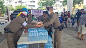 เจ้าหน้าที่ตำรวจ สถานีตำรวจนครบาลตลาดพลู, จิตอาสา และคณะ กต.ตร. นำเครื่องอุปโภคและบริโภค