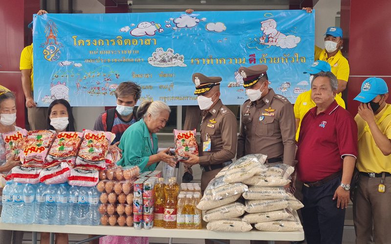 เจ้าหน้าที่ตำรวจ สถานีตำรวจนครบาลตลาดพลู, จิตอาสา และคณะ กต.ตร. นำเครื่องอุปโภคและบริโภค